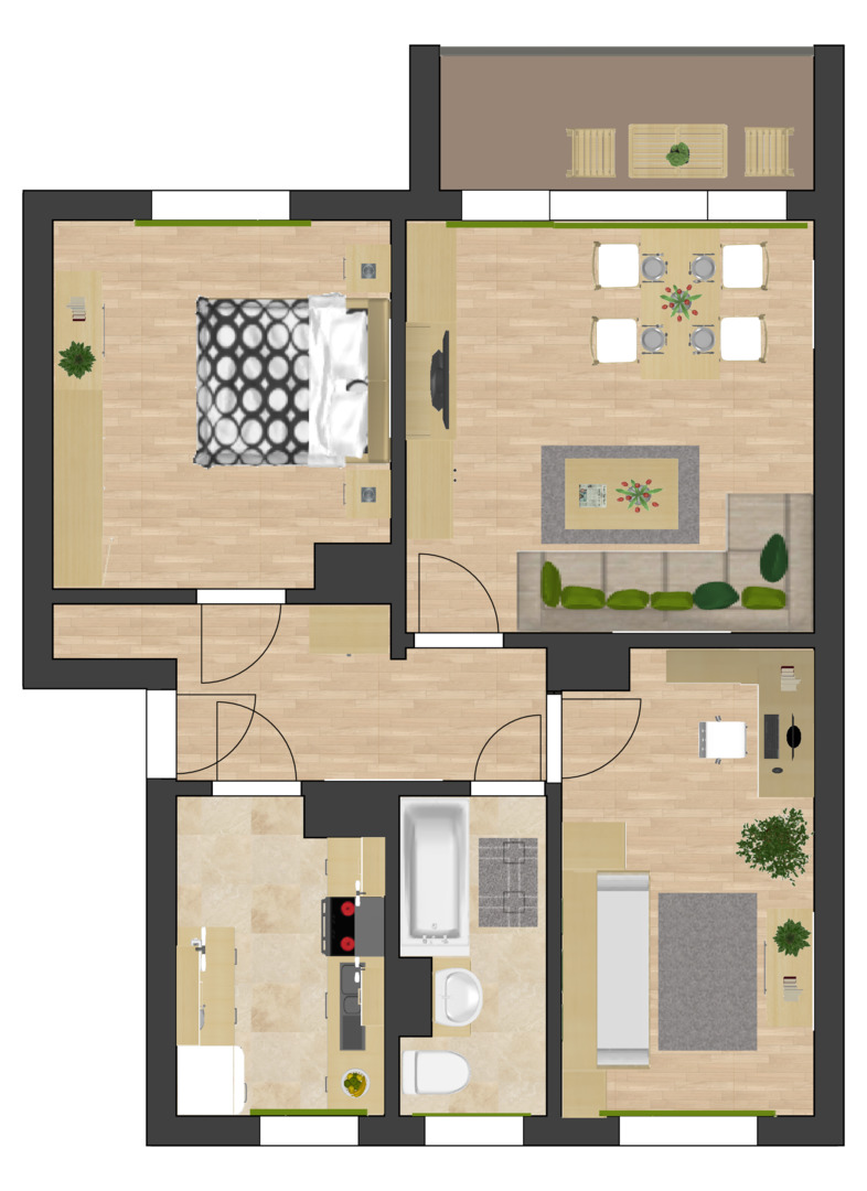 Wohnung unmöbliert. Angebot freibleibend. Änderungen und Irrtümer vorbehalten. Abbildungen ähnlich.